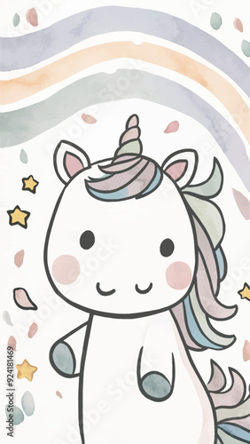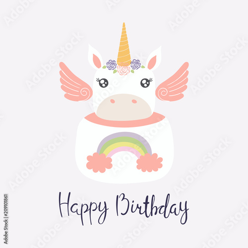 Cute unicorn vector. Baby horse cartoon icon. Charming pony animal sleeping having sweet dream isolated character on white background