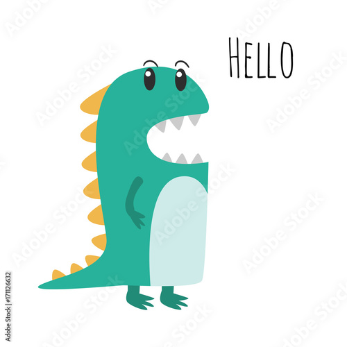 Dragon cartoon vector. Cute baby character illustration smelling flower icon. Fairy tale fantasy dinosaur, funny little monster isolated on white background