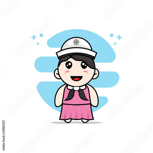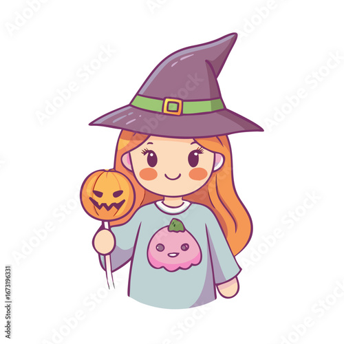 Cute enchantress with magic potion vector icon. Cartoon character wearing pretty hat, costume illustration. Magical fairytale sorcerer child isolated on white background