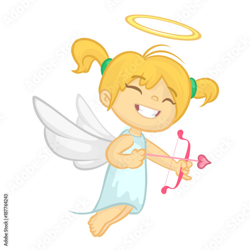Cute fairy flying vector illustration. Cartoon magic girl character with wings. Fairytale princess in costume. Fantasy little forest pixie angel isolated on white background
