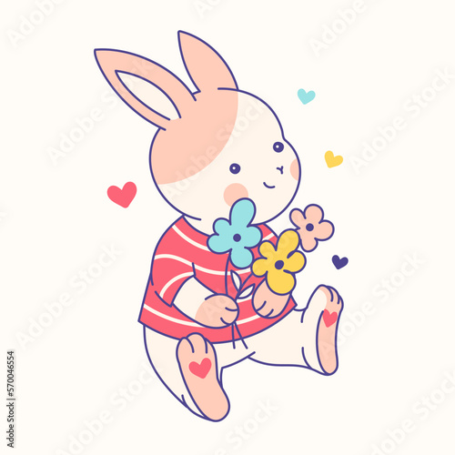 Cute fairy vector illustration. Cartoon magic girl character with wings. Fairytale princess in costume running holding and smelling flower. Fantasy little forest pixie isolated on white background