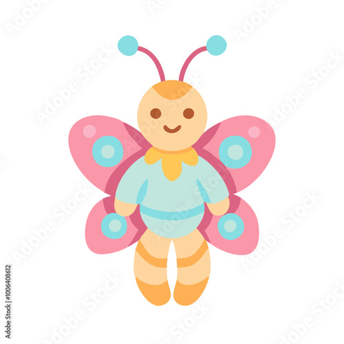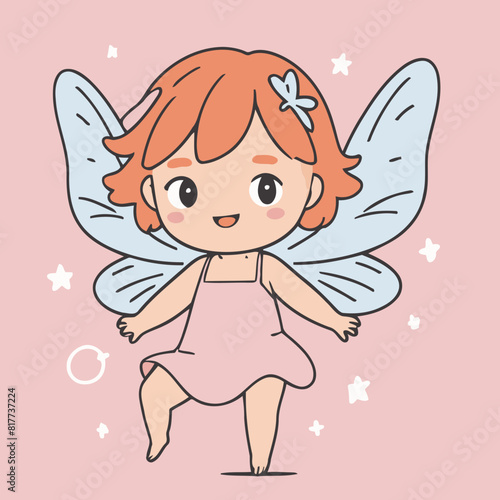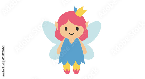 Cute fairy vector illustration. Cartoon magic girl character with butterfly. Fairytale princess in costume with wings. Fantasy little forest pixie angel isolated on white background