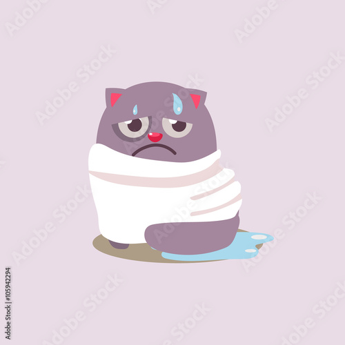 Cute fat cat vector. Cartoon animal. Kitten character rest illustration. Funny pet sitting in cardboard box icon isolated on white background