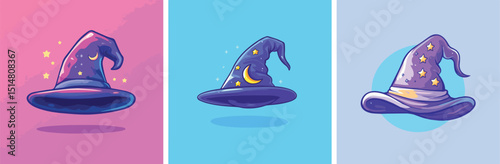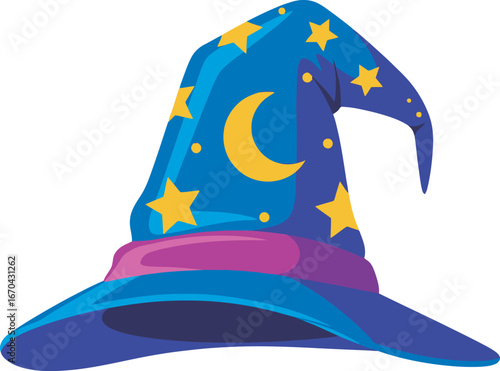 Cute funny wizard hat vector. Halloween starry purple merlin magician cap costume photobooth accessory icon isolated on white background