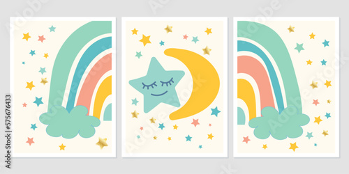 Cute mermaid greeting, invitation cards vector template set. Summer cards with beautiful girls mermaids swimming under sea with dolphin, crab, jellyfish, starfish, fish, turtle and handwritten text.