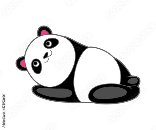 Cute panda cosmonaut vector. Funny cartoon space character icon. Comic bear animal spaceman in astronaut helmet sitting and holding star isolated on white background