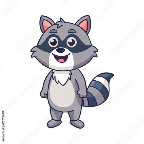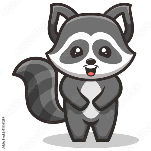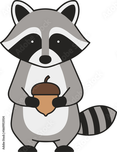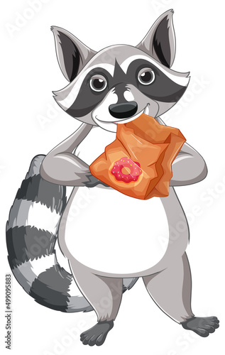 Cute raccoon vector. Funny woodland animal character carrying sweet cake in paw cartoon icon illustration isolated on white background. Happy birthday greeting
