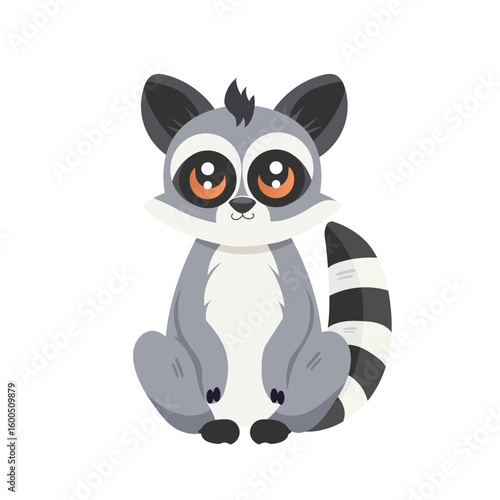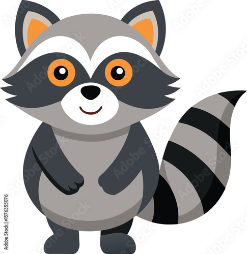 Cute raccoon vector. Funny woodland animal happy smiling cartoon icon. Playful, joyful, overjoyed character illustration isolated on white background