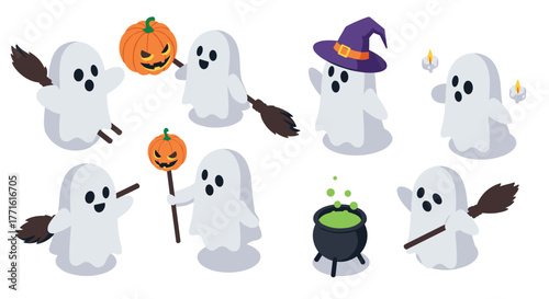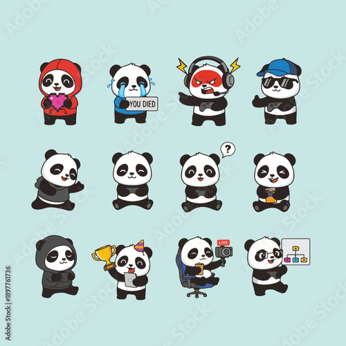 Cute raccoon icon set for greeting card, invitation, poster, sticker, print. Vector isolated illustration of funny raccoons with hearts, cake, coffee, popcorn, 3-d glasses, microphone and headphones.
