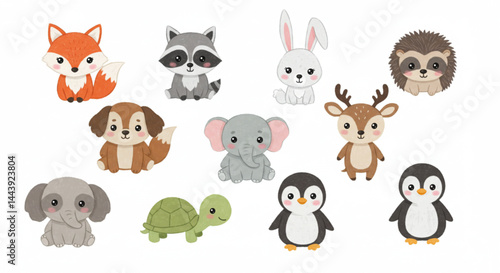 Cute sleeping wild animals icon set. Vector illustration of funny hedgehog fox bear squirrel owl raccoon rabbit deer and panda isolated on white background.