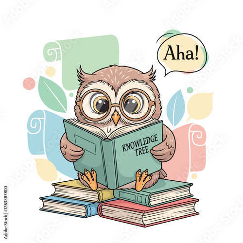 Cute sloth vector. Cartoon animal reading story book icon. Funny smart baby forest character in eyeglasses with fairytale isolated on white background