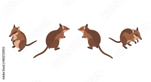 Cute small squirrel jumping on tree branch flat cartoon vector. Happy forest rodent with bushy tail on sprig illustration isolated on white background. Adorable funny wild animal on twig icon