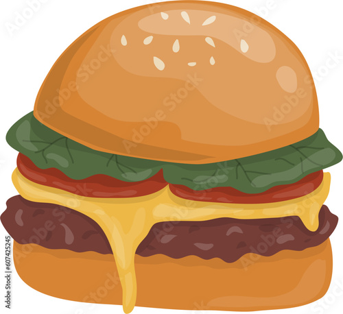 Burger character cartoon. Hamburger cute fast food vector. Funny smiling happy cheeseburger face isolated on white background. Comic junk food icon for logo menu illustration