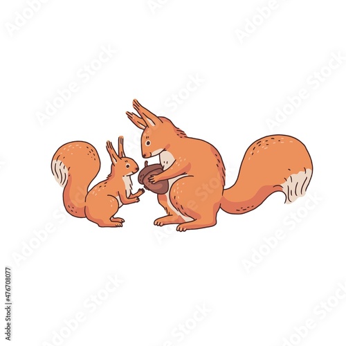 Cute squirrel funny character sleep and rest vector. Adorable wildlife mascot fluffy rodent with furry tail isolated on white background