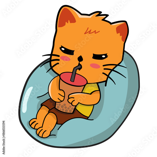 Cute cat vector. Cartoon animal. Kitten character illustration. Funny pet taking bath swimming in pool icon isolated on white background