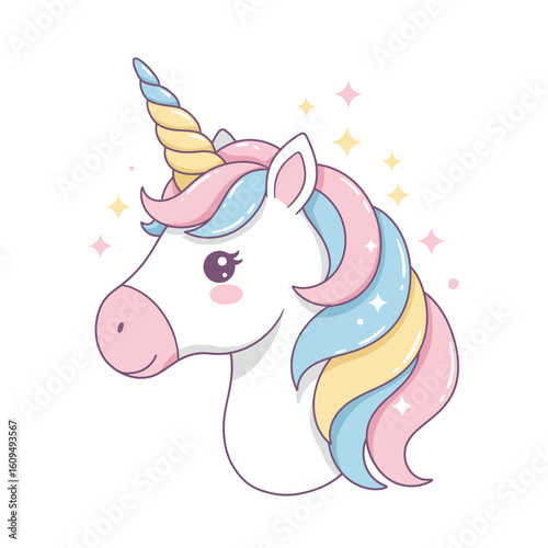 Cute unicorn vector. Baby horse cartoon icon. Happy magic animal isolated character on white background