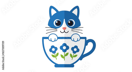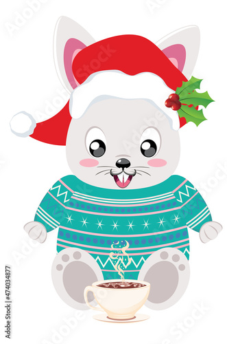 Winter cat in scarf and hat vector. Cute pet animal icon illustration. Kitten character in funny knitted wear for Christmas, New Year holiday greeting season card doodle design isolated on white background
