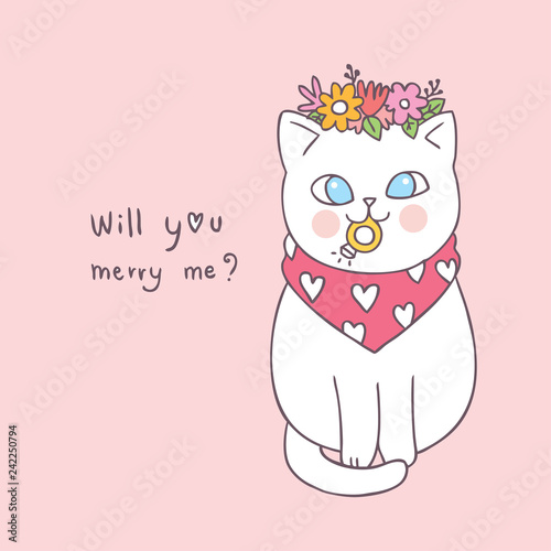 Winter cat in warm sweater and hat vector. Cute pet animal icon illustration. Funny kitten character walking. Doodle design for greeting cold season card isolated on white background