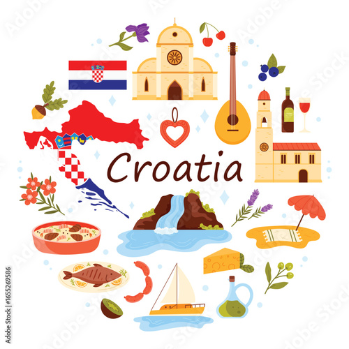 Czech republic icons and symbols isolated set. Vector illustration of traditional national food and drinks, landmark and architecture, sign and flag
