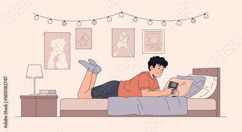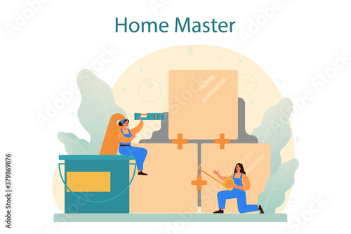 Daily life. Young woman doing makeup in the morning, flat vector illustration. Daily morning routine, everyday activities, beauty habits.