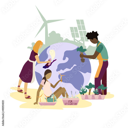 Huge piece of cheese, micro male and female characters holding milk carton, bowl of cottage cheese, pouring milk from bottle into the glass, vector illustration. Healthy milk products, dairy industry.
