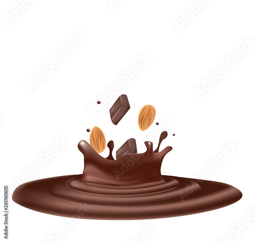 Dark chocolate with almond icon realistic vector. Sweet dessert brand design element isolated on white background