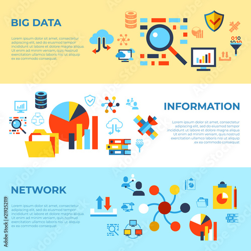 Datacenter concept vector isometric horizontal banner set with cloud service, data center and data security design elements.