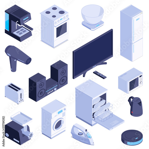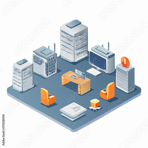 Data center isometric icon set, flat vector isolated illustration. Computer network equipment and staff. Server racks, operator, technician, engineer characters.