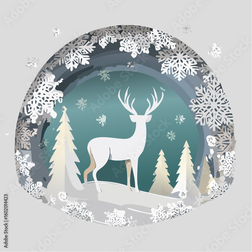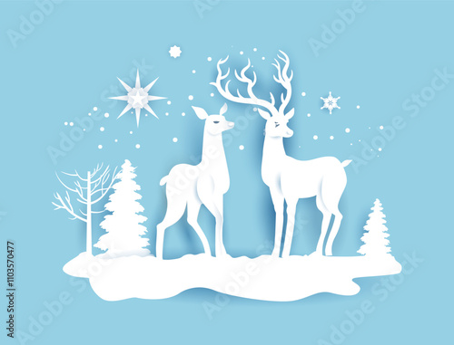 December, January and February winter season months. Christmas tree, reindeer, Valentines Day pink hearts, vector illustration in paper art style. Winter holidays composition set for calendar, card.