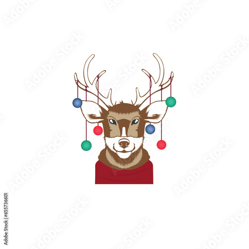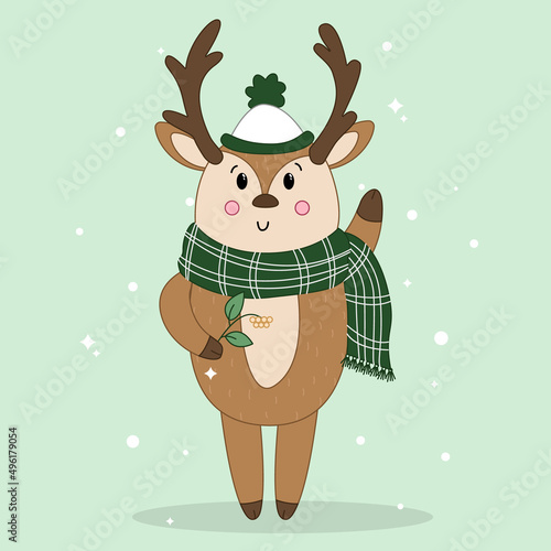 Deer cute pilot animal cartoon vector icon. Reindeer funny character flying on plane isolated on white background. Doodle design for postcard