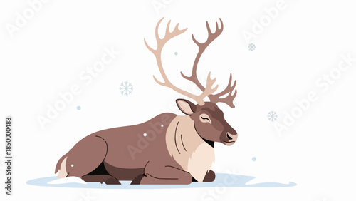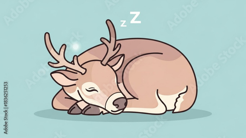 Deer on beach vector. Cute reindeer enjoy summer icon. Funny lazy sleepy animal sunbathing on plaid blanket. Holiday on weekend, season rest, happy character illustration isolated on white background