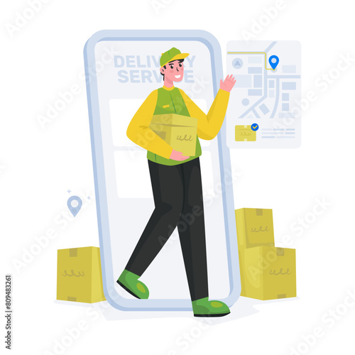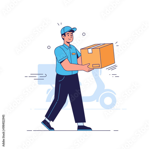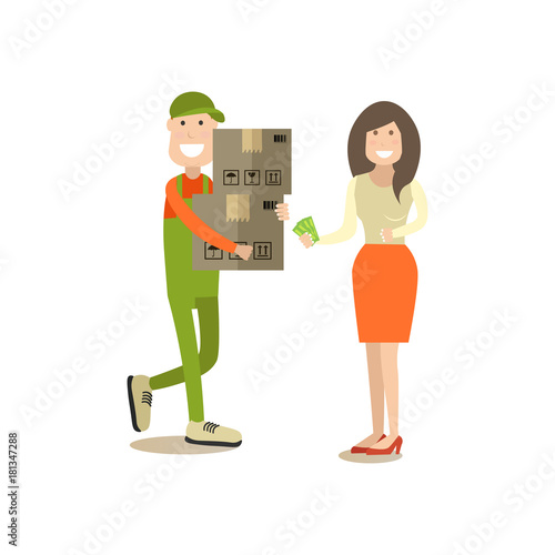 Vector illustration of loader man with cardboard boxes. Delivery people concept flat style design element, icon isolated on white background.