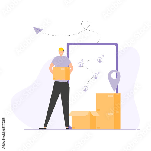 Vector illustration of postal worker parcel packer. Delivery people concept flat style design element, icon isolated on white background.