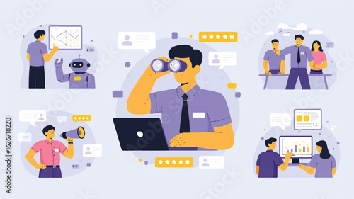 Delivery scene set, flat vector isolated illustration. Global logistics, international shipment, online shopping and delivery service.