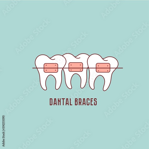 Dental braces installation for for straightening and treating teeth infographic brochure. Orthodontic dentistry vector poster. Healthy lifestyle and oral care medical illustration