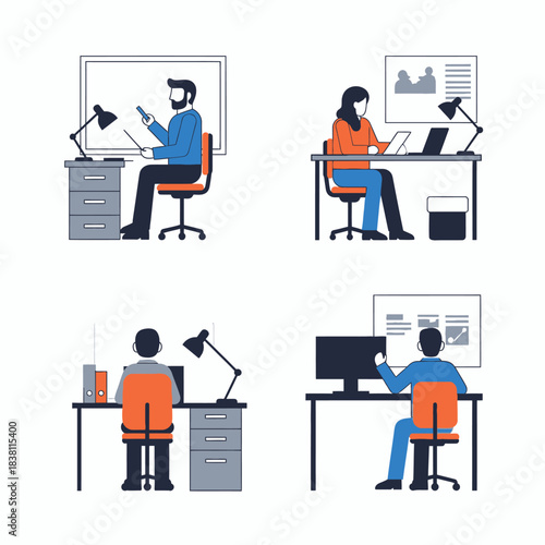 Vector illustration of travelling family father, mother and daughter. Tourist people concept flat style design element, icon isolated on white background.