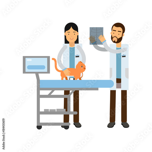 Vector illustration of doctor male dermatologist examining his patient. Medical practitioner flat style design element, icon isolated on white background.