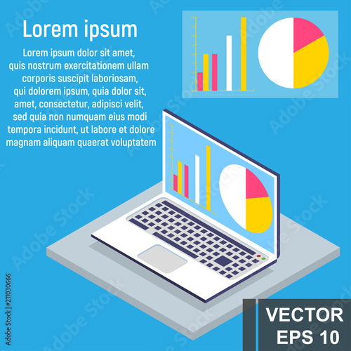 Desktop cryptocurrency wallet, flat vector illustration. Isometric laptop computer with bitcoins and shield. Digital money storage, online crypto coin wallet.