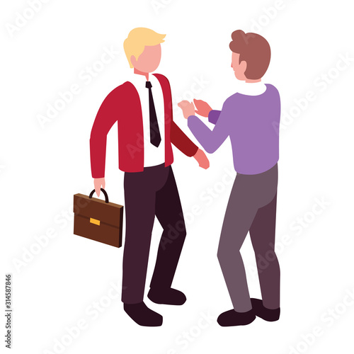 Devil deal concept vector illustration. Two businessmen shaking hands. Businessman making a deal with devil.