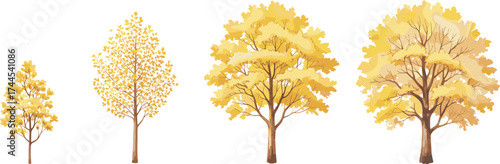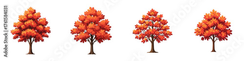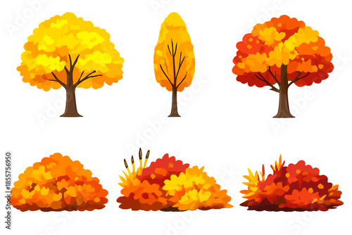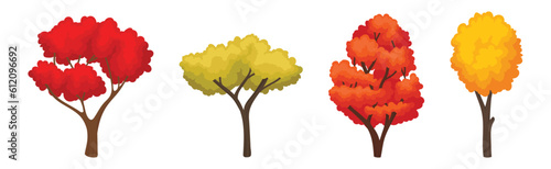 Garden, forest and park tree vector illustration. Isolated wood set. Blossoming, evergreen, tropical exotic or autumnal plants for backyard landscaping and game constructor
