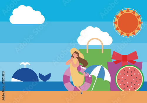 Digital detox concept vector flat illustration. People taking rest in nature being out of touch with others, disconnecting from all digital devices. Happy women reading book, going picnic, doing yoga.