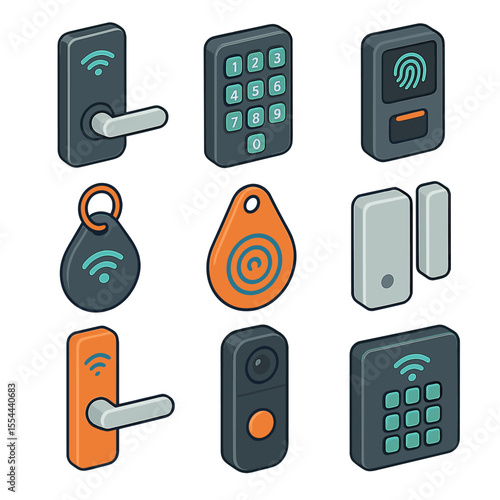 Digital door handles with electronic code locks and fingerprint access realistic set. Modern security knobs for house interior design elements vector illustration