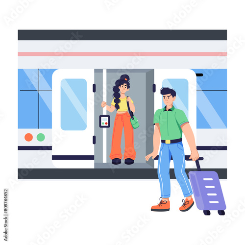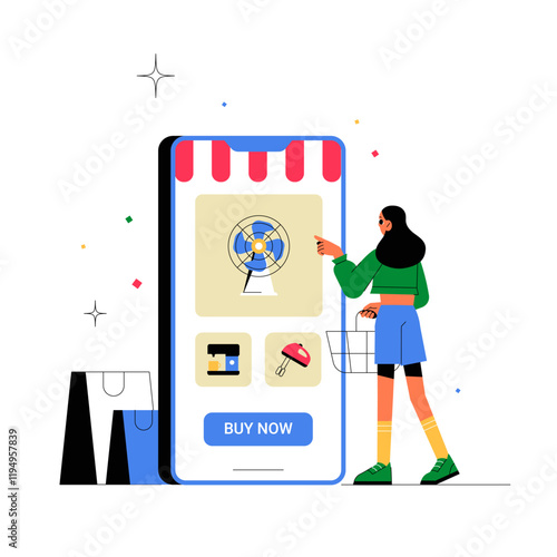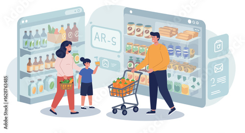 Man buying and woman reading newspaper magazine online in mobile phone newsstand, vector flat illustration. Digital newsstand concept with male and female cartoon characters news readers.