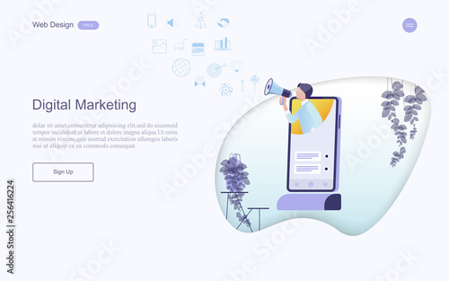 Digital signature landing page design, website banner template, flat vector illustration. Businessman signing digital agreement on smartphone screen using usb key token. Smart contract.