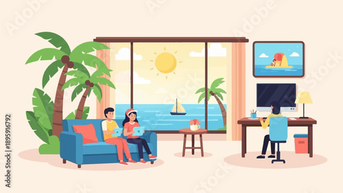 Vector illustration of students having lunch break. Dinner concept design element in flat style.