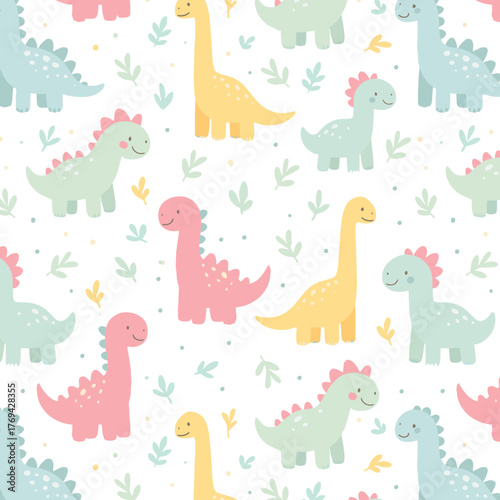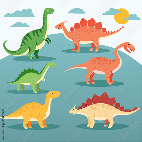 Dinosaur cartoon character set, flat vector isolated illustration. Cute pink and blue dino, prehistoric animal, toy collection.