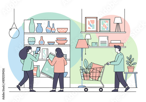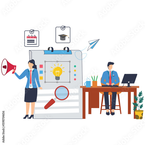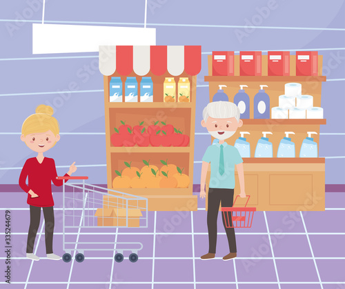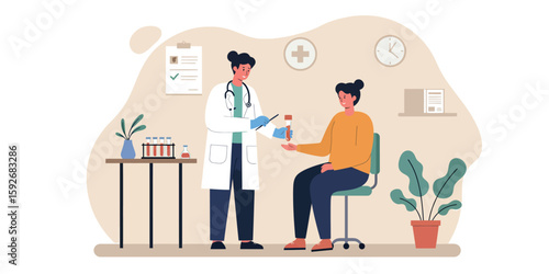 Cafe, coffee shop scene with barista at counter and disabled businessman with prosthetic arm and leg buying coffee in reusable cup, flat vector illustration. Disabled person lifestyle.