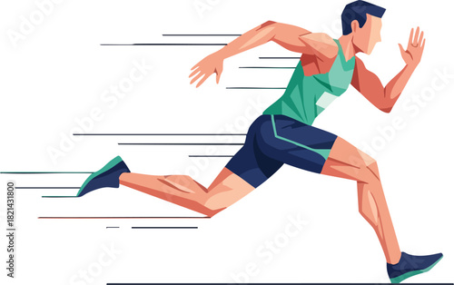Disabled man runner with prosthetic leg vector. Isometric amputee male athlete with artificial limb prosthesis jogging. Handicapped people healthy lifestyle and sport isolated on white background