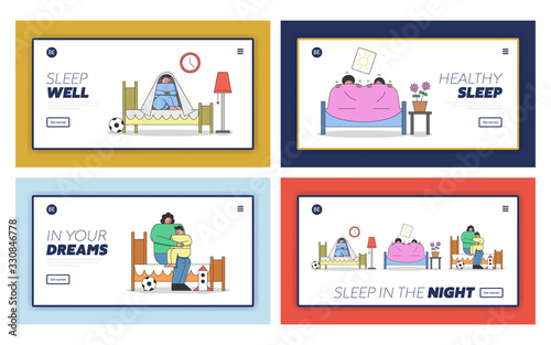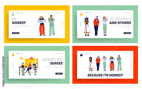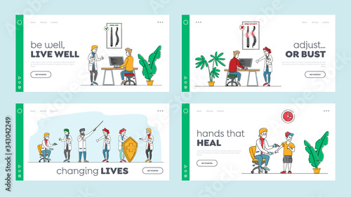 Disabled people web banner template set. Vector flat illustration of handicapped young man and women working, walking and doing sports using prosthesis, wheelchair, blind woman with guide dog.