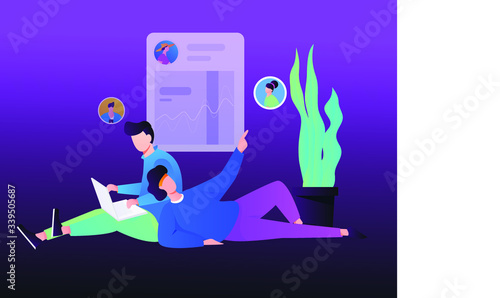 Disco party, vector illustration. Happy people dancing and drinking wine, dj mixing music. Nightclub party, nightlife composition for web banner, website page etc.